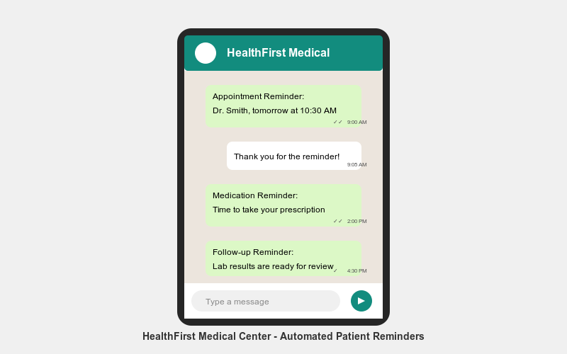 - Send appointment reminders, health tips, and re-engagement messages.